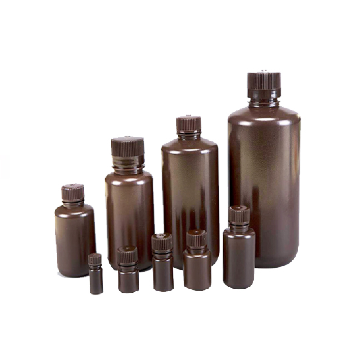 ขวดพลาสติกปากแคบสีชา ปราศจากเชื้อ / Narrow Mouth Reagent Bottle, HDPE, Brown, Sterile